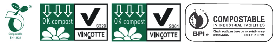 We supply an environmentally friendly alternative designed to mirror the functionality and uses of traditional plastic based products – minus the negative environmental impacts associated with plastic products. Our biodegradable and compostable products are scientifically developed to break down within weeks in a compost environment, without leaving any harmful residues in the process. Additionally, all of our products are certified to the various worldwide standards of Compostability including the the European Standard EN13432-2000 and the American Standard ASTM D6400-2004.
